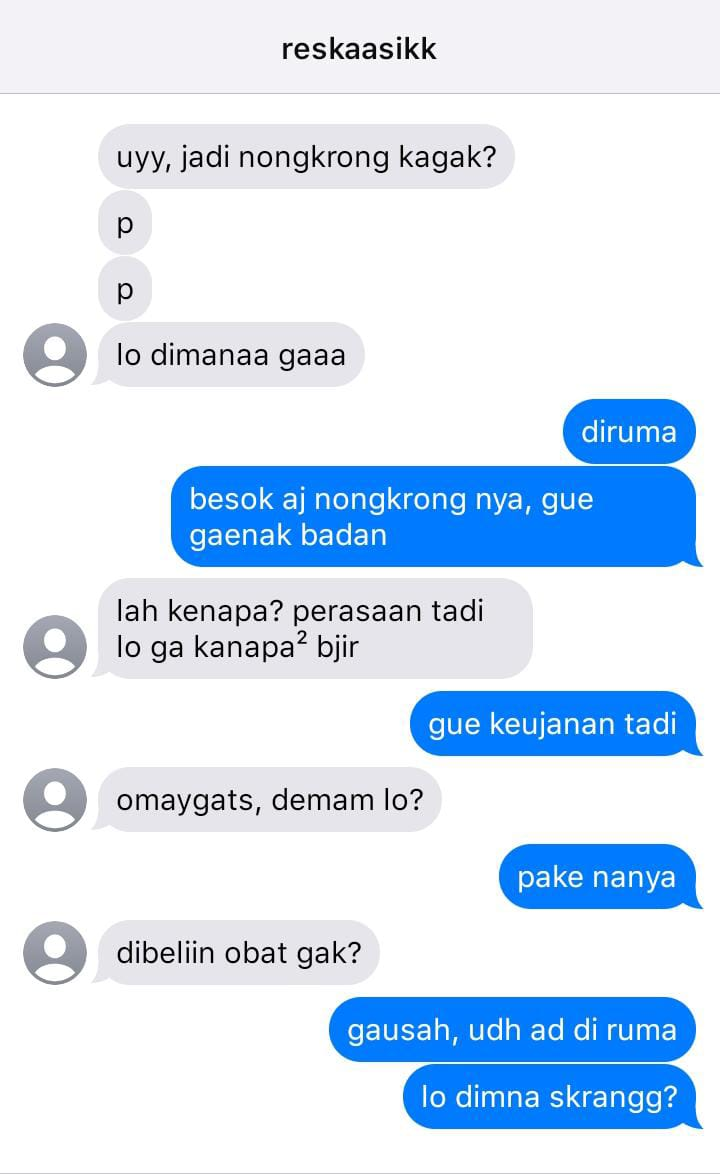 Setelah aku meminum teh hangat, aku kembali ke ranjang dan bermain handphone di atas ranjang. Saat aku membuka ponsel, sudah banyak notif dari Reska.