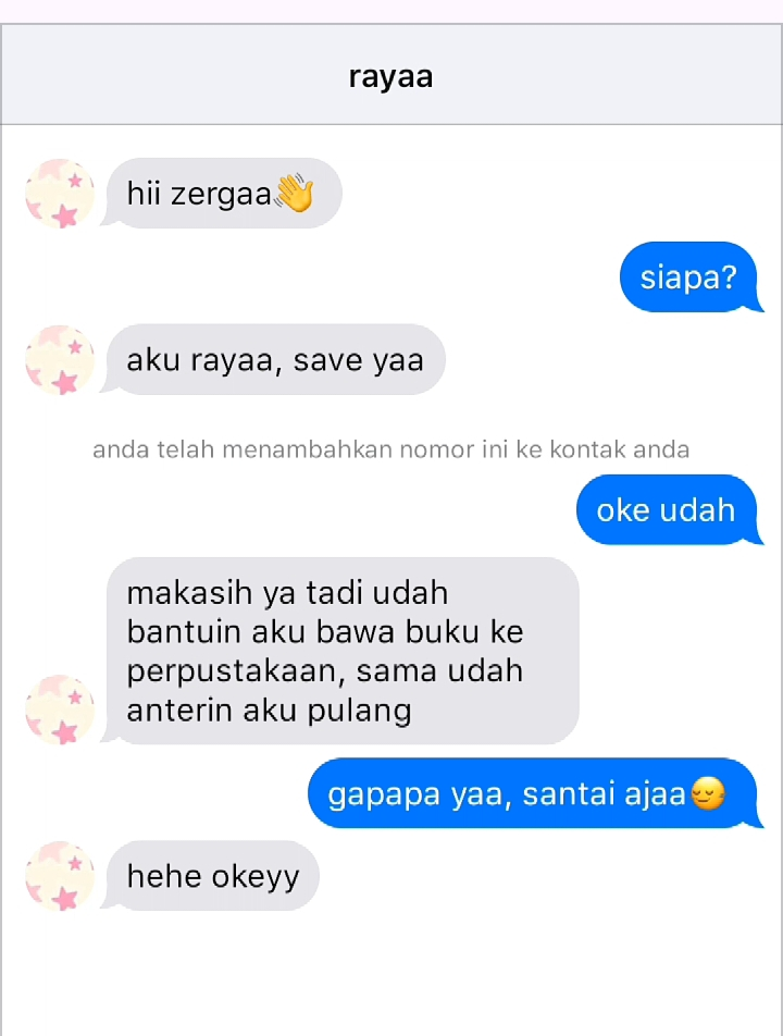 “Ah, biarin. Yang penting aku udah save nomor Raya.” gumamku lagi.