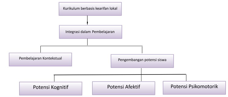 Dari ketiga komponen utama tersebut sekolah dapat menyisipkan materi kearifan local pada beberapa bagian, terutama di bagian yang fleksibel atau kontekstual, seperti :